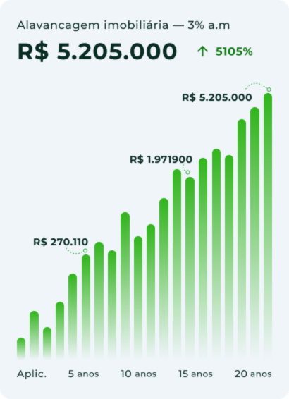 A alavancagem patrimonial permite aumentar seu patrimônio investindo em imóveis financiados, gerando renda passiva e valorização ao longo do tempo.